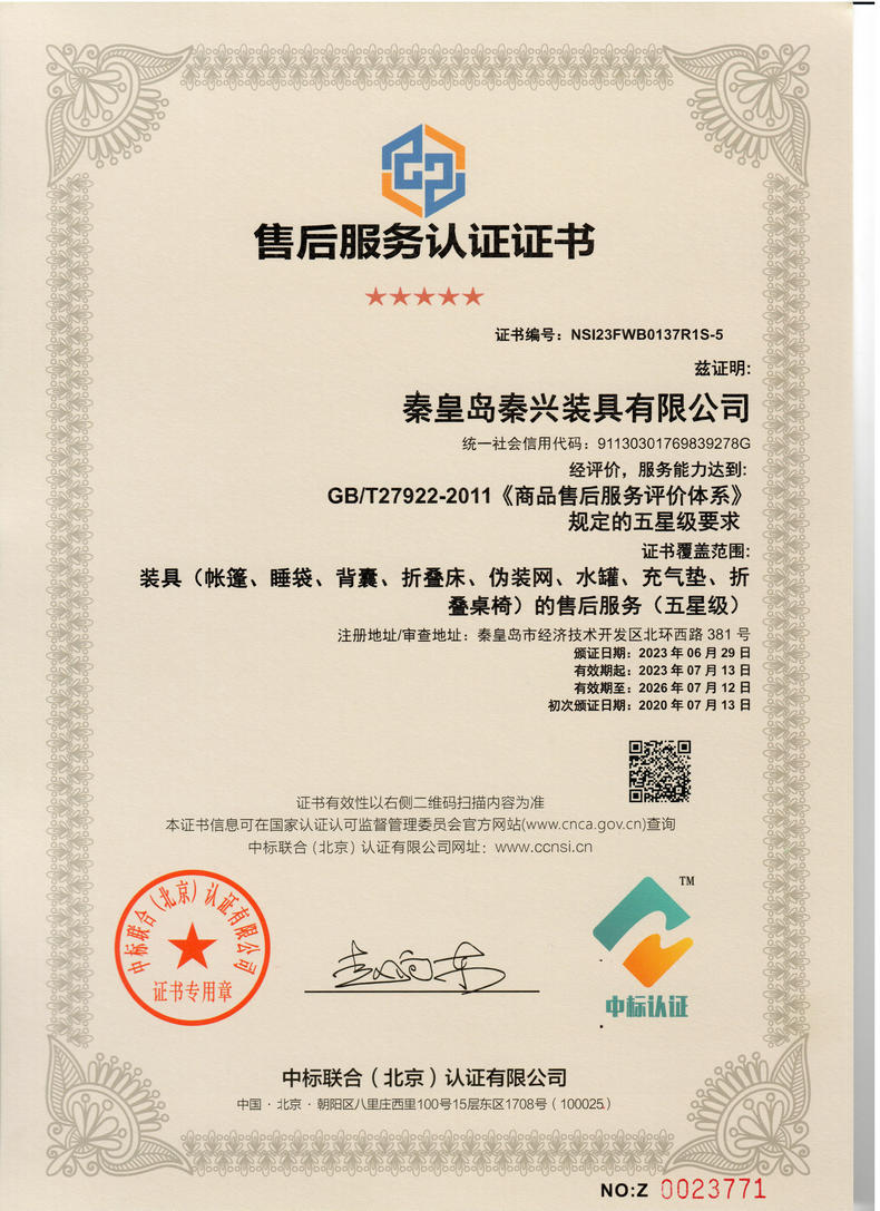 秦皇島秦興裝具有限公司有限公司源于我國(guó)第3524工廠,創(chuàng)建于2005年,占地面積30畝,是一家致力于研究,發(fā)展,制造和銷(xiāo)售為一體的綜合性裝具及紡織服裝加工生產(chǎn)企業(yè),我們的主要產(chǎn)品有單、棉帳篷,民用帳篷,旅游帳篷集各種機(jī)工產(chǎn)品等。